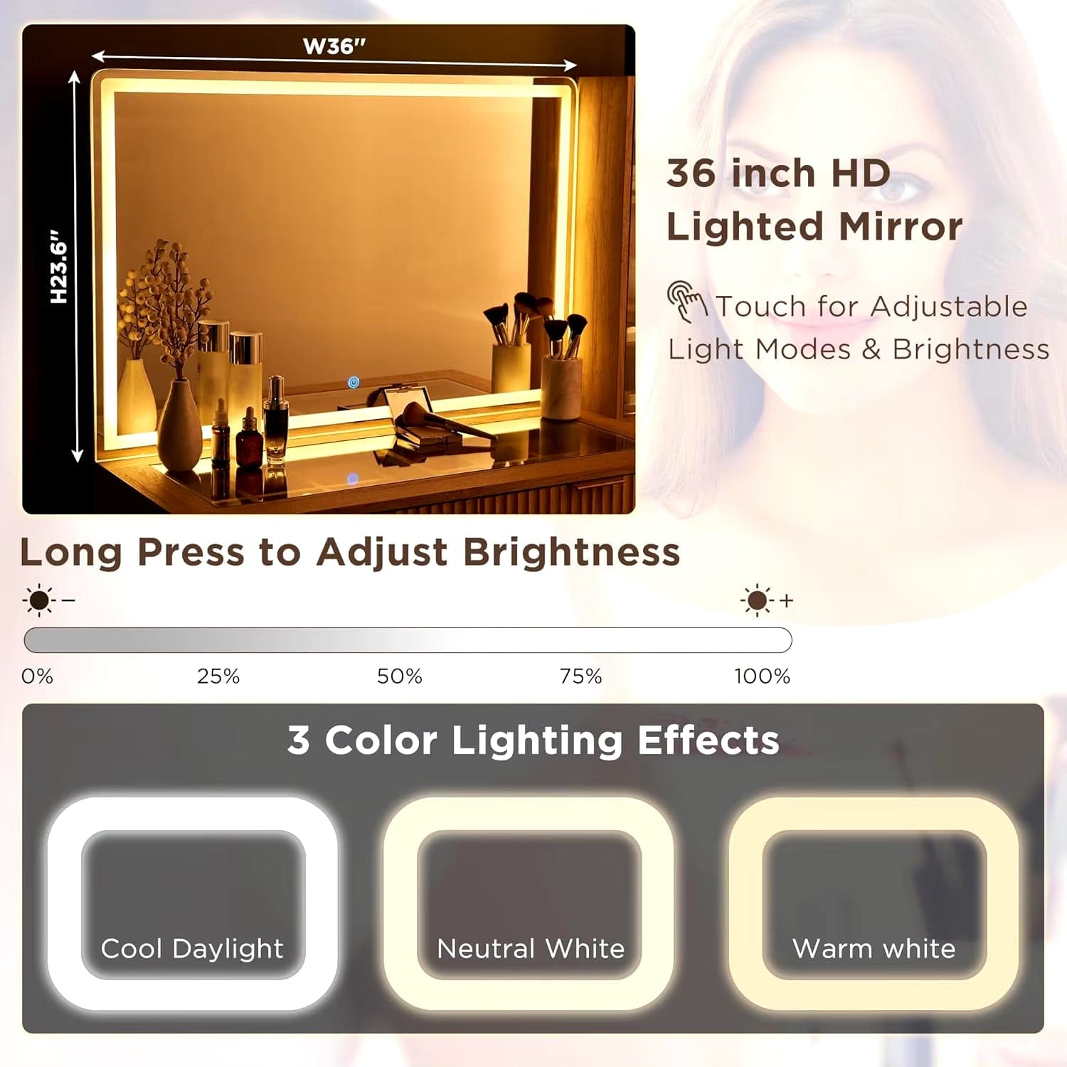 - Spacious 36" Large Mirror: Offers a true and accurate reflection, essential for flawless makeup application.