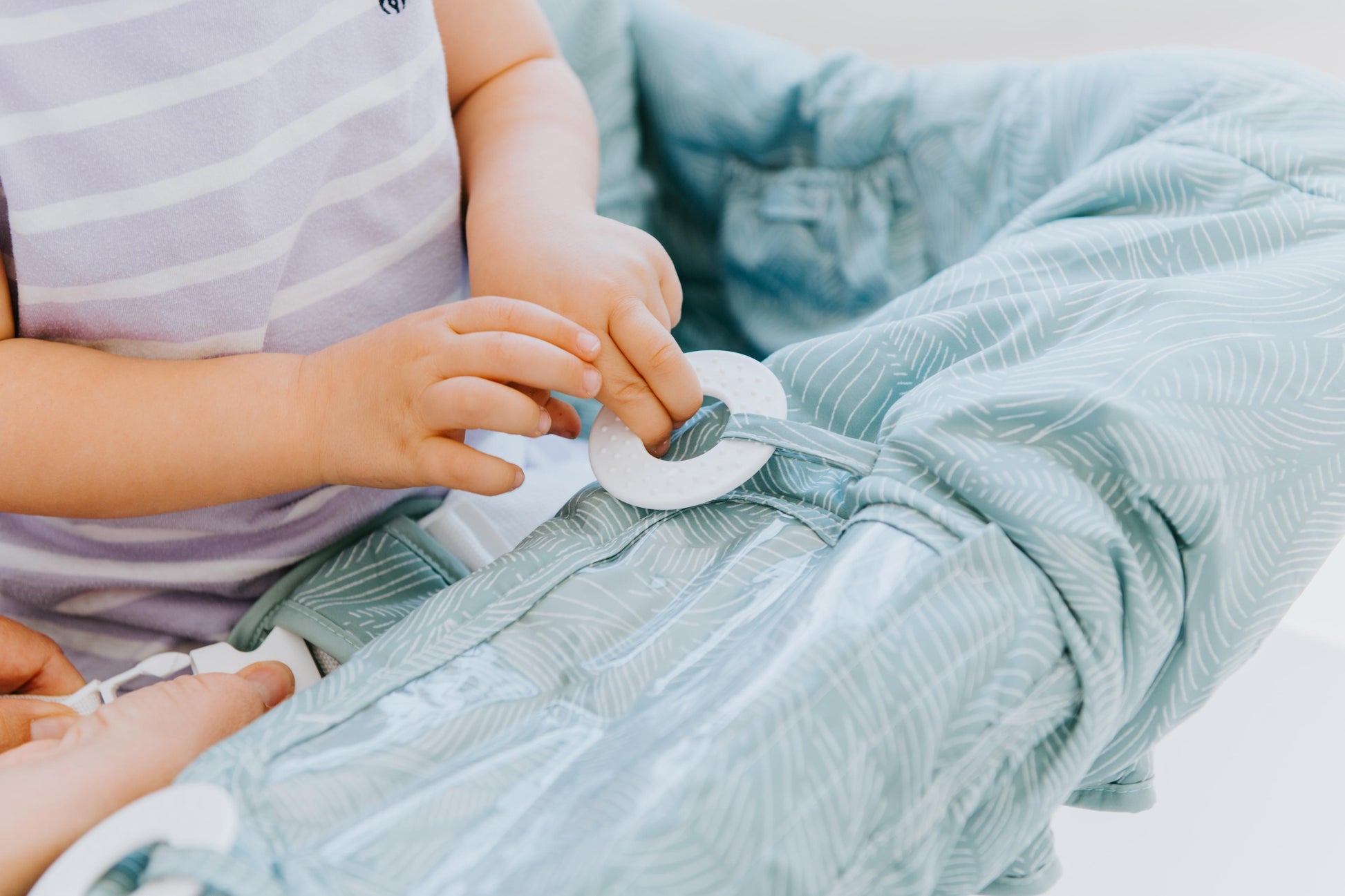 WASHABLE - One of the benefits of using a shopping cart cover is that it’s a germ barrier. But if it’s really going to do its job – protecting you and your baby from other people’s germs – you have to keep it clean. We recommend washing your shopping cart cover in a washing machine on a gentle cycle in cold water. You can wash the hammock and cart cover with other items made of similar fabrics – the hammock is 97% cotton and 3% spandex and the cart cover is 100% polyester – or you can wash them alone if you’re worried about the plastic clips or velcro snagging other baby clothes, towels, or blankets. Shopping cart covers can go in the dryer on a low heat setting, but lay hammocks flat to dry. Make sure both are completely dry before storing or using them. Following these simple washing and drying techniques will help maintain the velvety soft fabric and lifespan of your hammock and cart cover.