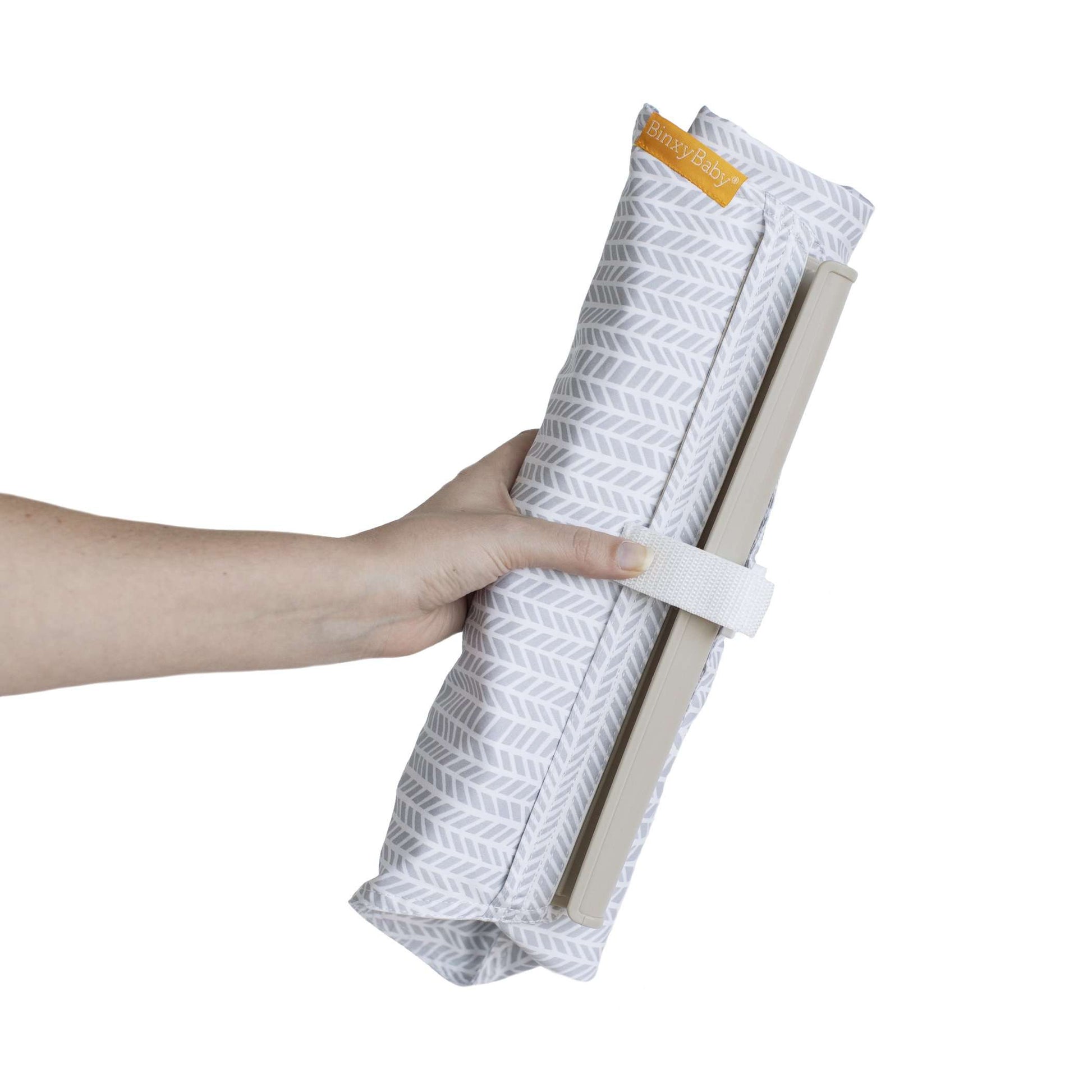 Our comfy Binxy Baby shopping cart hammock in a sweet neutral gray arrow print quickly and easily clips onto most carts, hangs elevated so you have plenty of room for groceries, then simply rolls up to fit in your purse or diaper bag when finished. Most infant car seats sit snugly inside the Shopping Cart Hammock and can be secured using the included safety strap. Learn more about how the Shopping Cart Hammock works and how to put it in your cart.