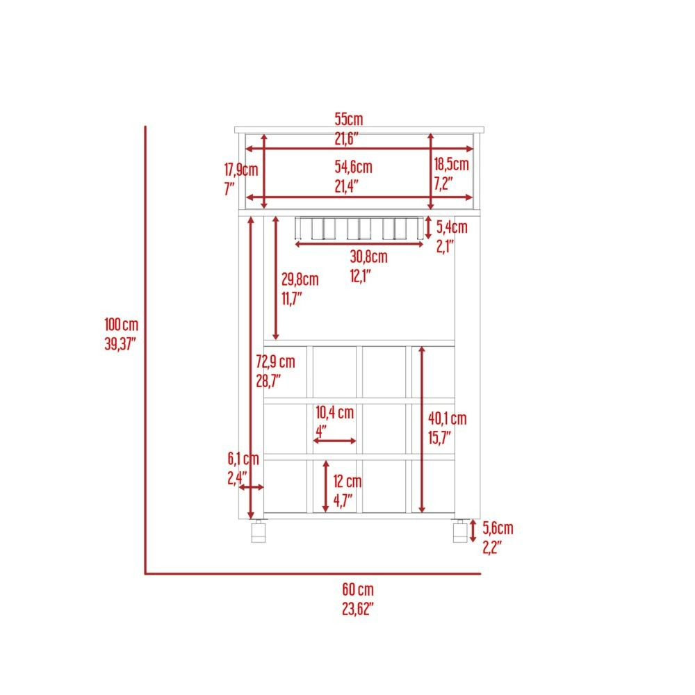 Bayamon Bar Cart – Contemporary Wine & Glass Storage with Drawer and Casters