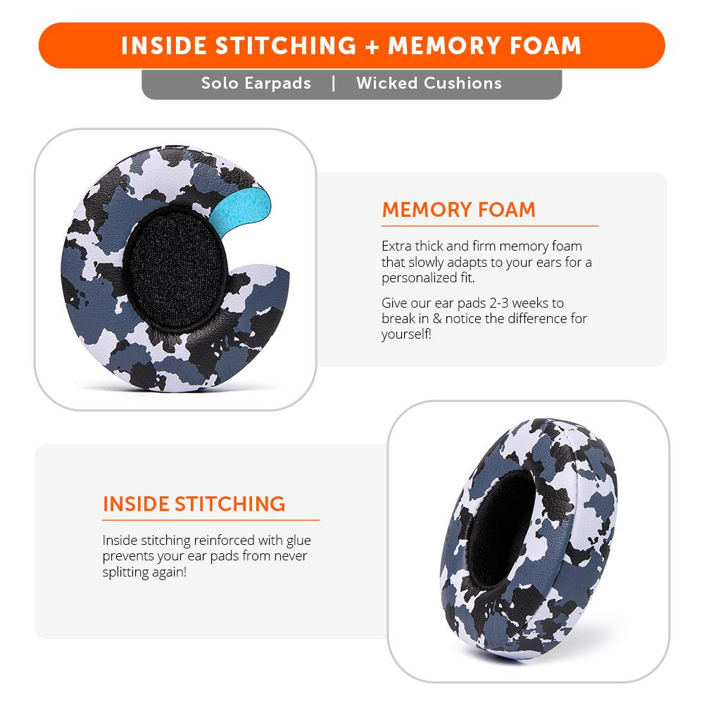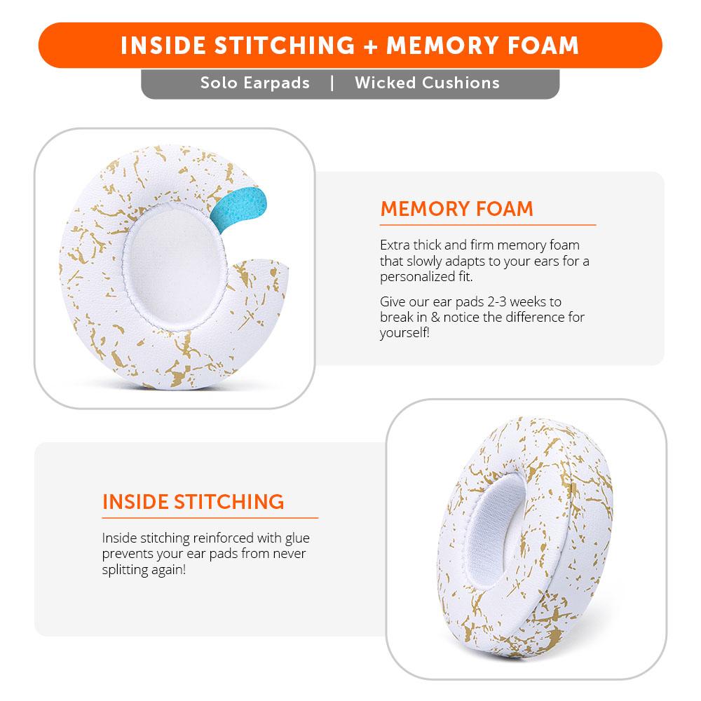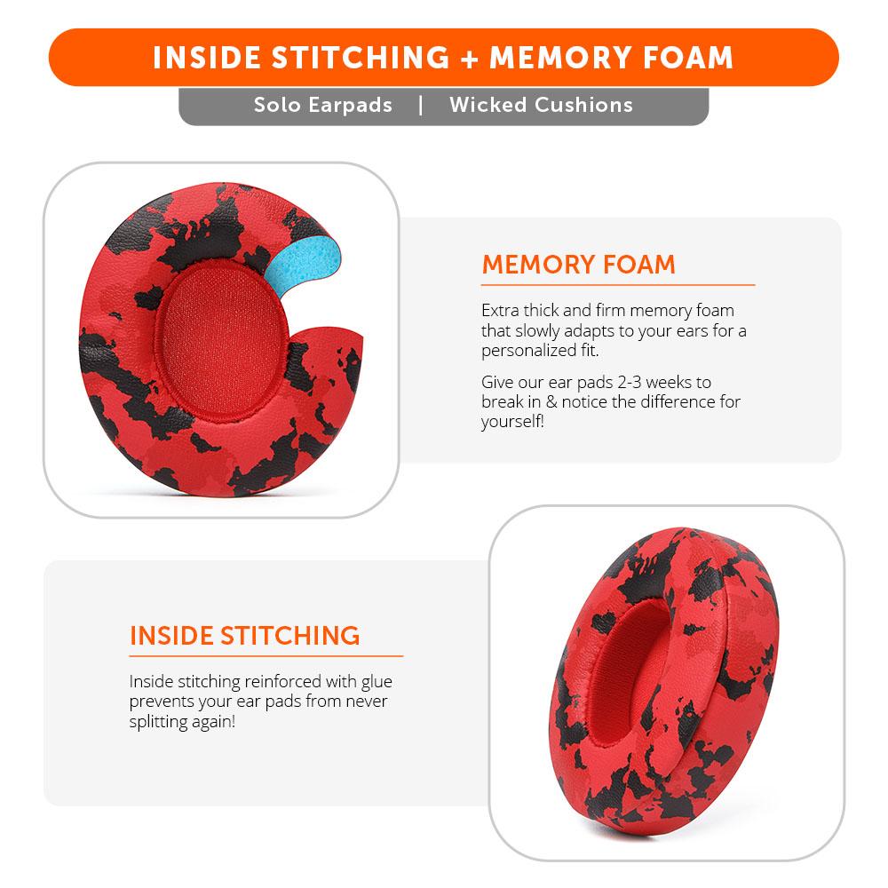 - Rugged Durability: Our replacement ear pads that are compatible with Beats Solo Wireless headphones are made extra durable. We added stitching and heavy-duty glue on the inside of seams each earpad to prevent them from splitting.