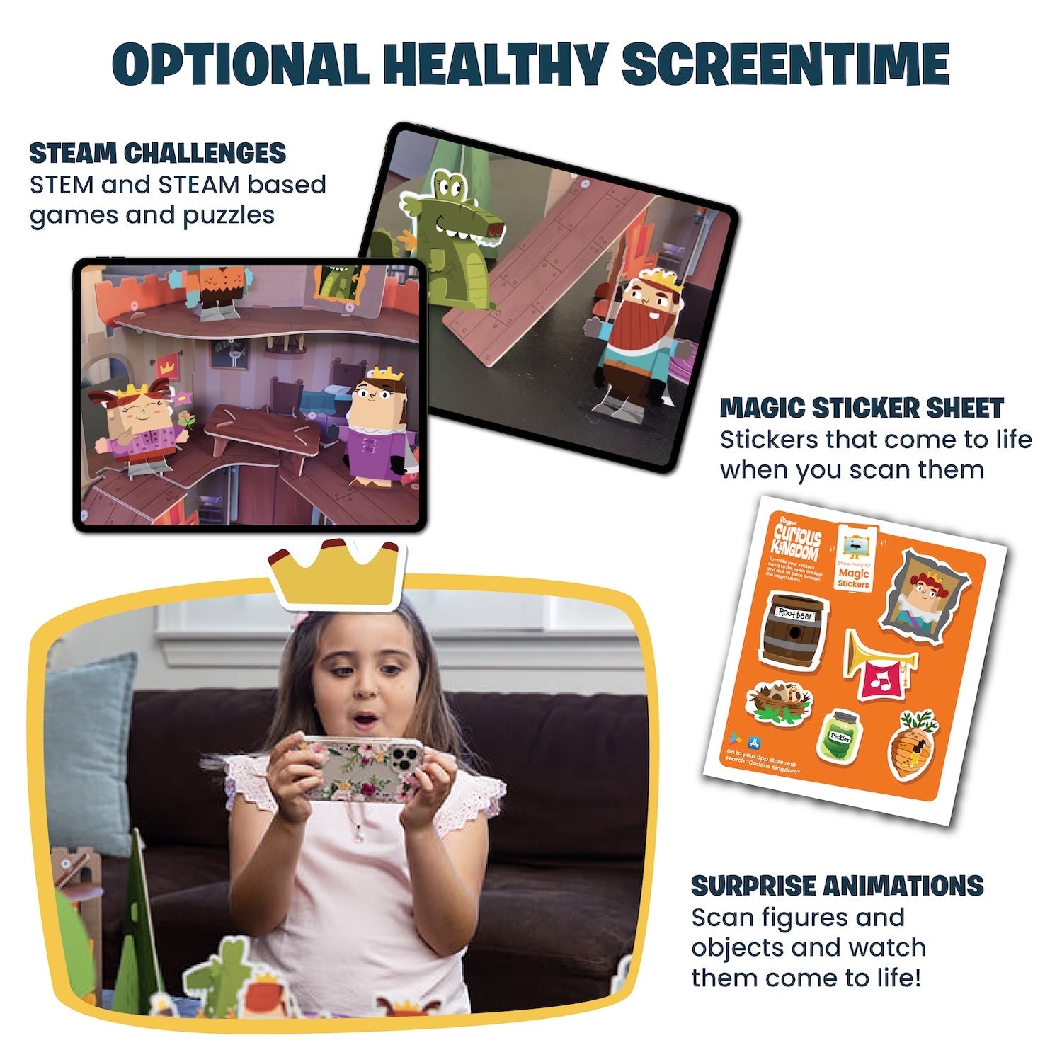 With three castle levels, a working drawbridge, secret trap doors, and plenty of windows and hiding spots, this playset adds excitement and surprise to every adventure. Kids can even use the Magic Sticker Sheet to unlock augmented reality surprises with the optional and free app designed for healthy screen time.