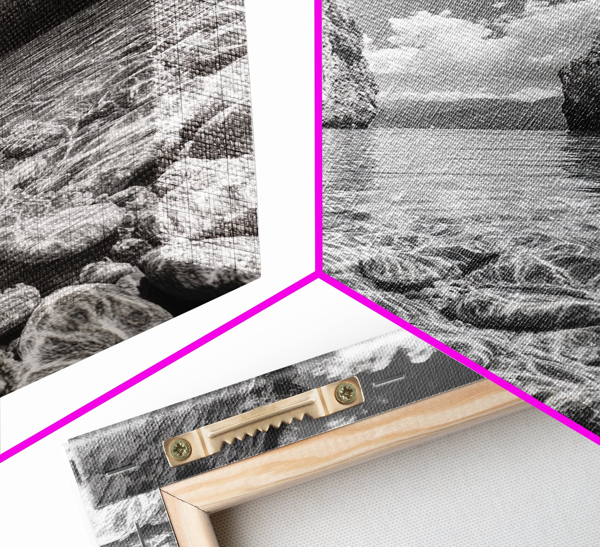 Clear Waterscape, Rocky Shoreline, Tropical Escape, Nature Photography, Framed Canvas Print, Beach House Coastal Wall Art