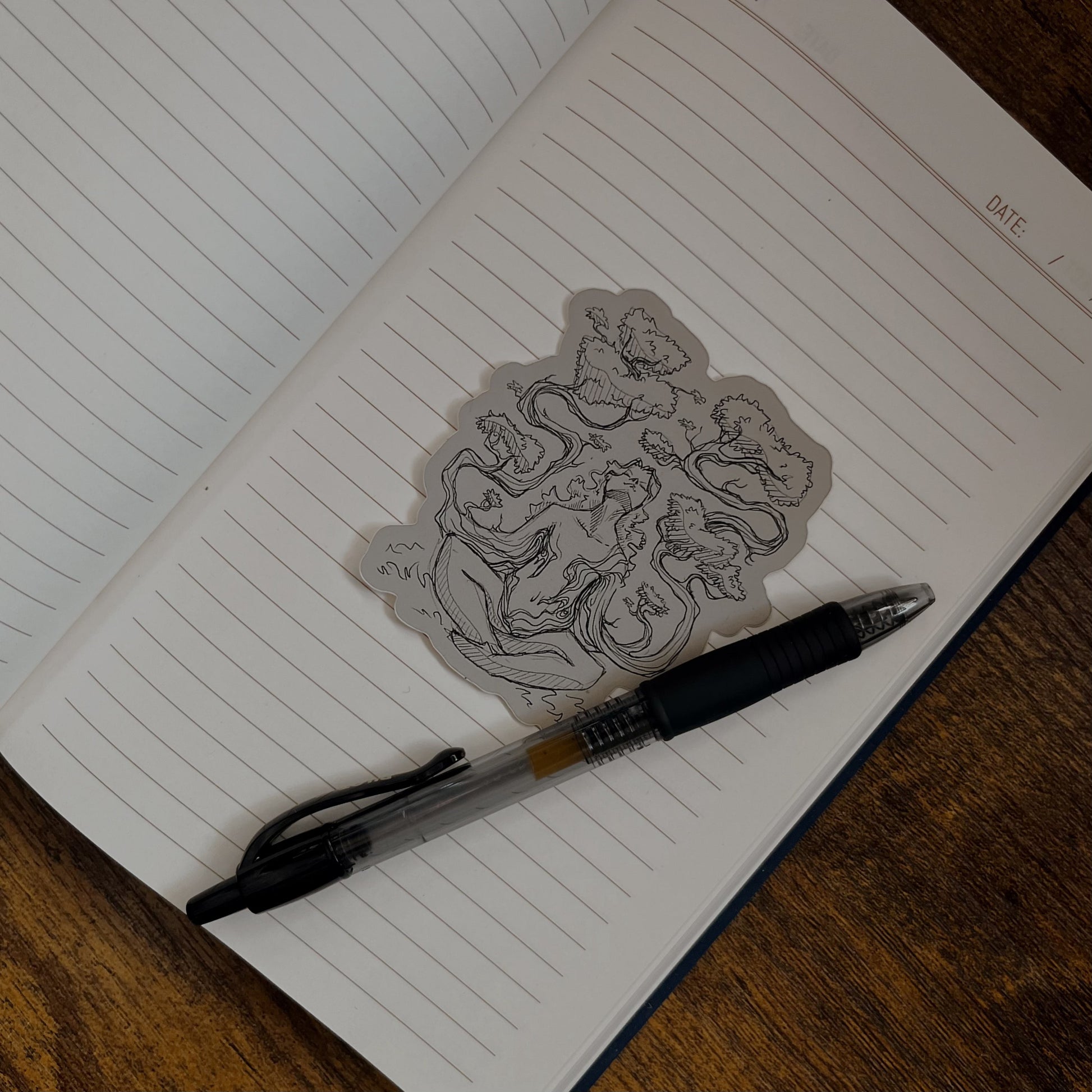 This Dryad comes straight from the shop artist's digital sketchbook. She is inspired by the twisting nature of the bonsai tree and the nature spirits of Grecian myth. Though this design did not start as a block-printed design, she retains all the handmade qualities of a loose sketch.