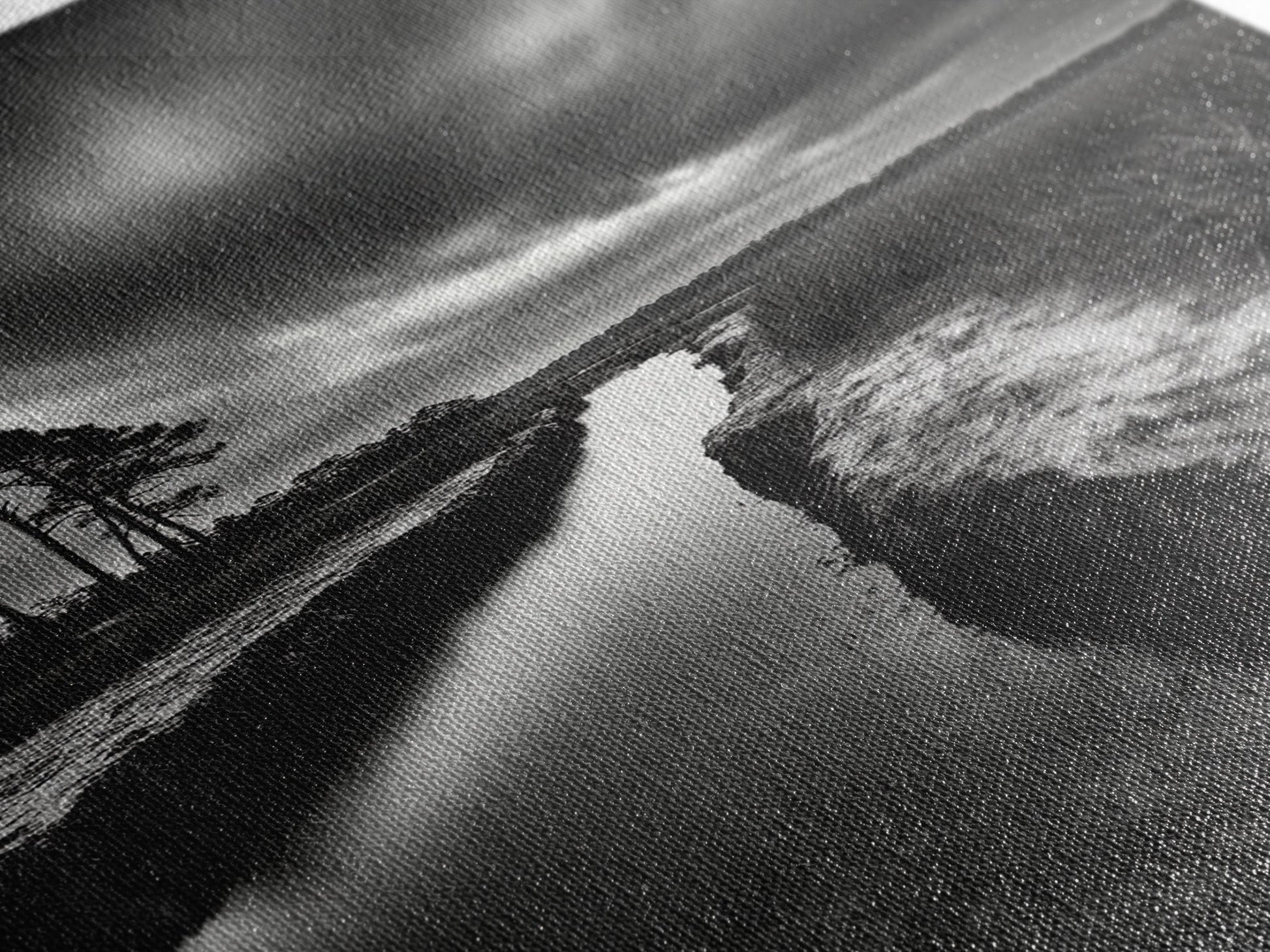 Misty Marsh Path, Moody Landscape, Nature Wall Decor, Living Room Art, Canvas Print, Black and White Photography, Autumn Wall Art