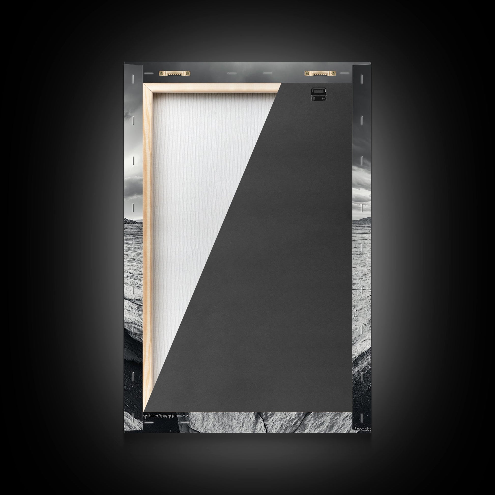 Monument Valley Cliff, Desert Rockscape, Framed Canvas Print, Western Wall Art, Office Decor, Black and White Photography
