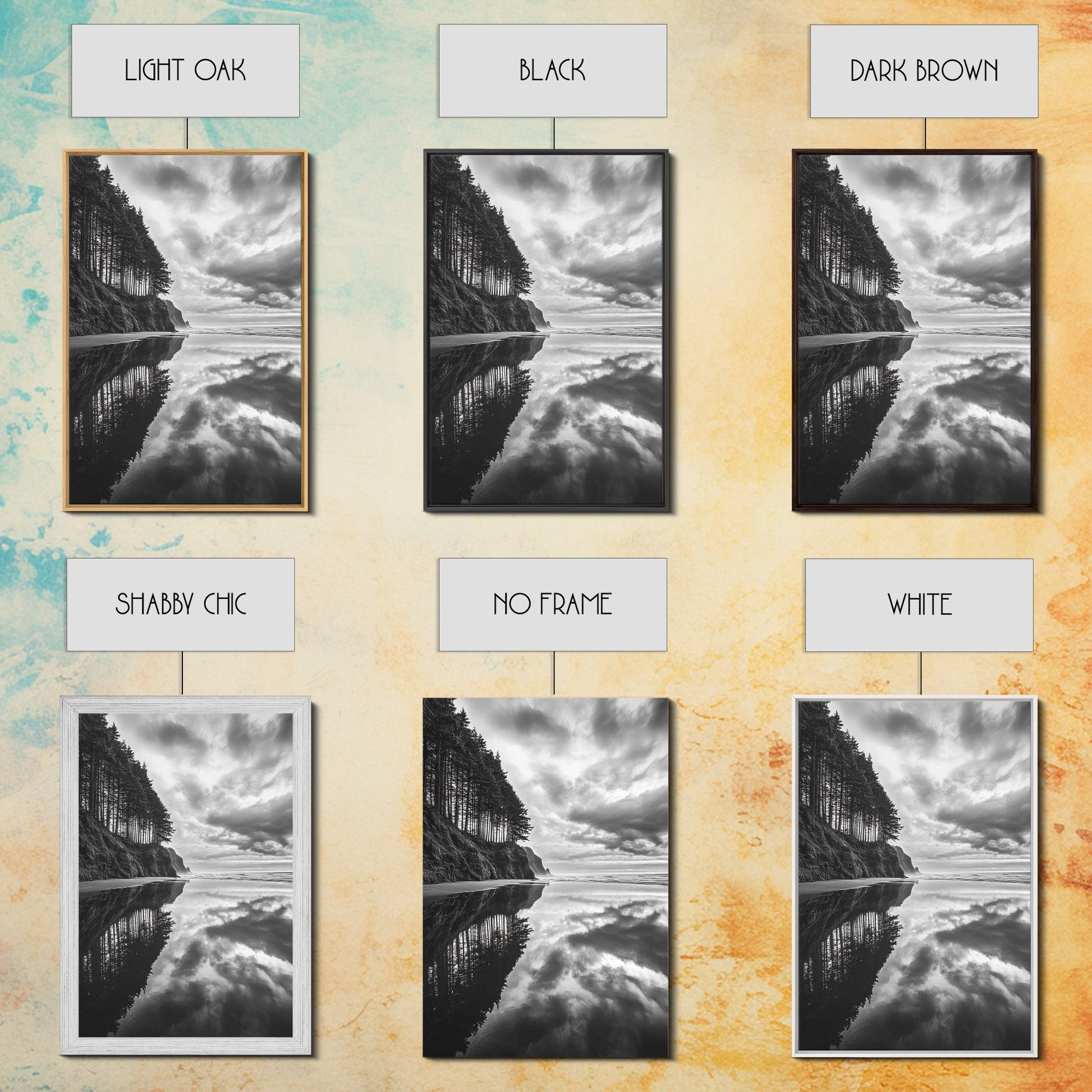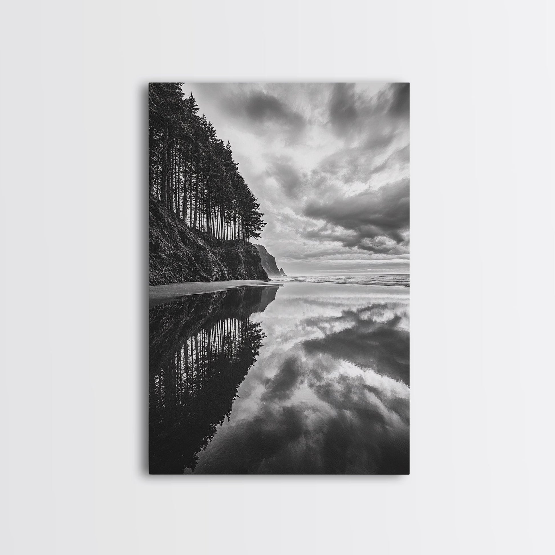 Ocean Cliff Reflection, Dramatic Coastline Art, Cloudy Sky Canvas, Framed Canvas Print, Living Room Wall Art, Moody Landscape Photography