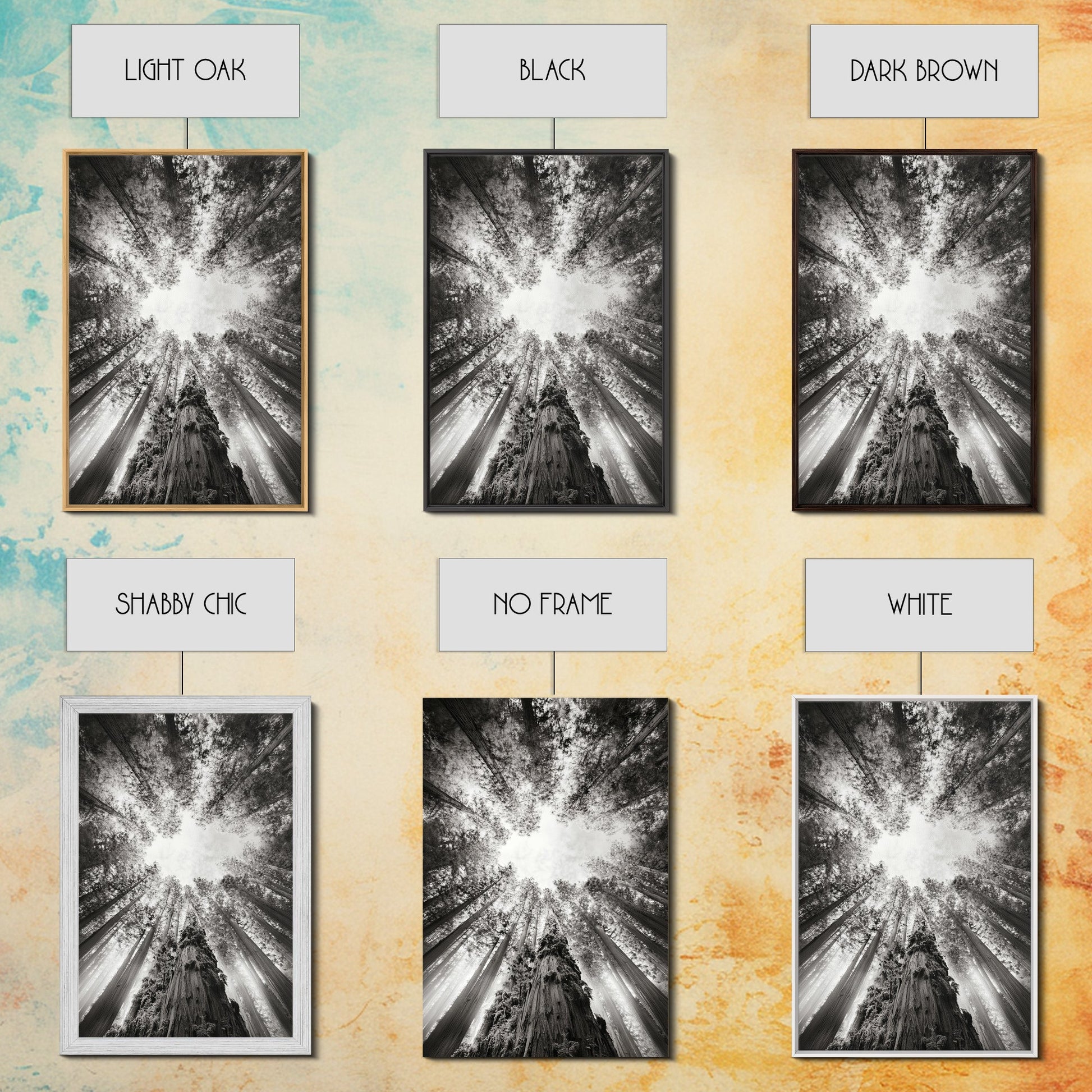 Redwood Canopy Sky, Majestic Forest Trees, Vertical Nature Scene, Framed Canvas Print, Wilderness Wall Art, Lodge or Den Decor