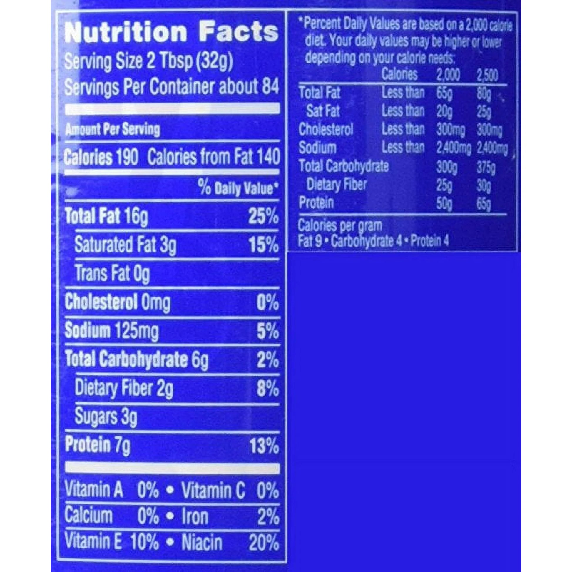 - Each serving of peanut butter has 7g of protein