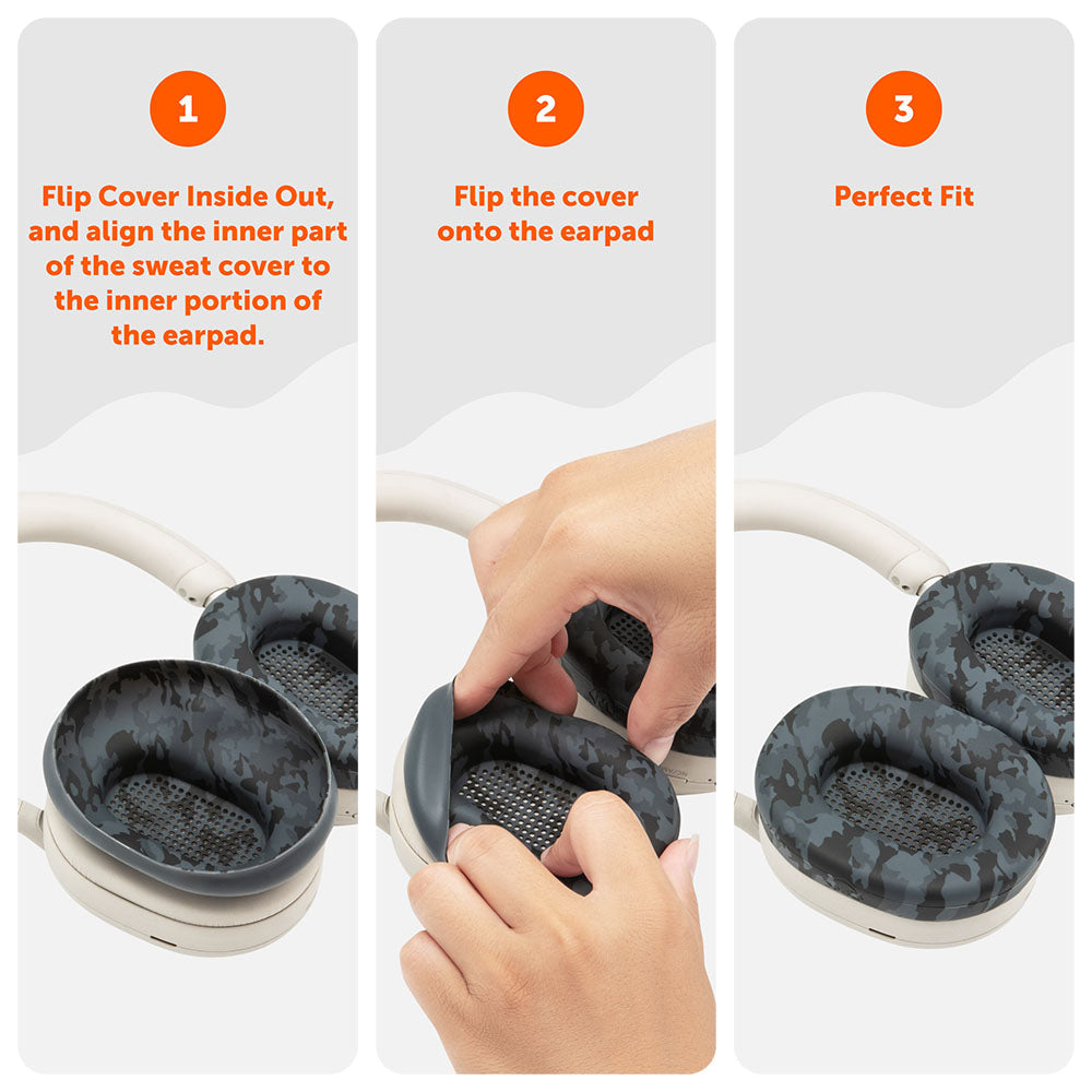 Ultimate Defense: WC SweatZ Earpad Covers slide on and off your existing Sony WH-1000XM5 headphone ear pads in seconds, keeping them supple and protected from sweat, moisture, and everyday wear.