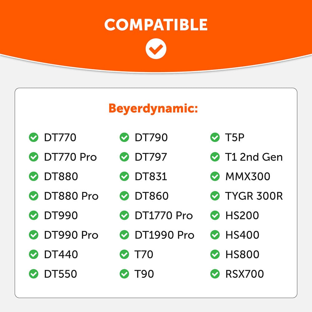 - Fits Like A Glove: These ear pads, made by Wicked Cushions, fit the following models of Beyerdynamic Headphones only: DT770/DT770 Pro/DT880/DT880 Pro/DT990/DT990 Pro/DT440/DT550/DT790/DT797/DT831/DT860/DT1770 Pro/DT1990 Pro/T70/T90/T5P/MMX300/TYGR 300R/HS200/HS400/HS800/RSX700/T1 2nd Gen Headphones.
